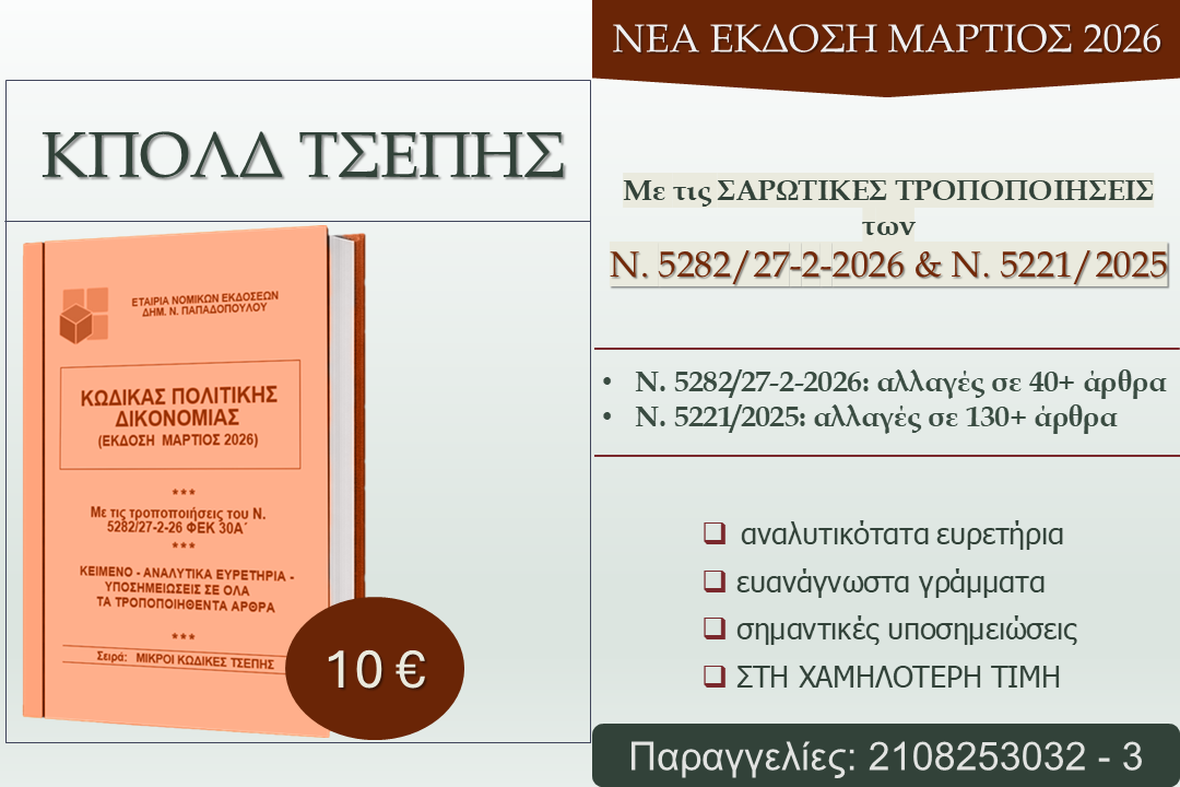 Ο ΝΕΟΣ ΚΩΔΙΚΑΣ ΠΟΛΙΤΙΚΗΣ ΔΙΚΟΝΟΜΙΑΣ ΤΣΕΠΗΣ- έκδοσης Μαρτίου 2026 -Στη χαμηλότερη τιμή της αγοράς,στα 10 ευρώ μόνοΠλήρως επικαιροποιημένος
